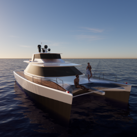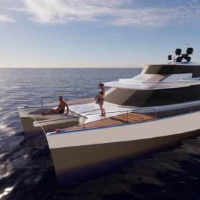 | Chiều rộng (Beam): | 7 – 8 m | → Rộng gấp ~1.8–2 lần mono-hull → rất ổn định, phù hợp biển Việt Nam |