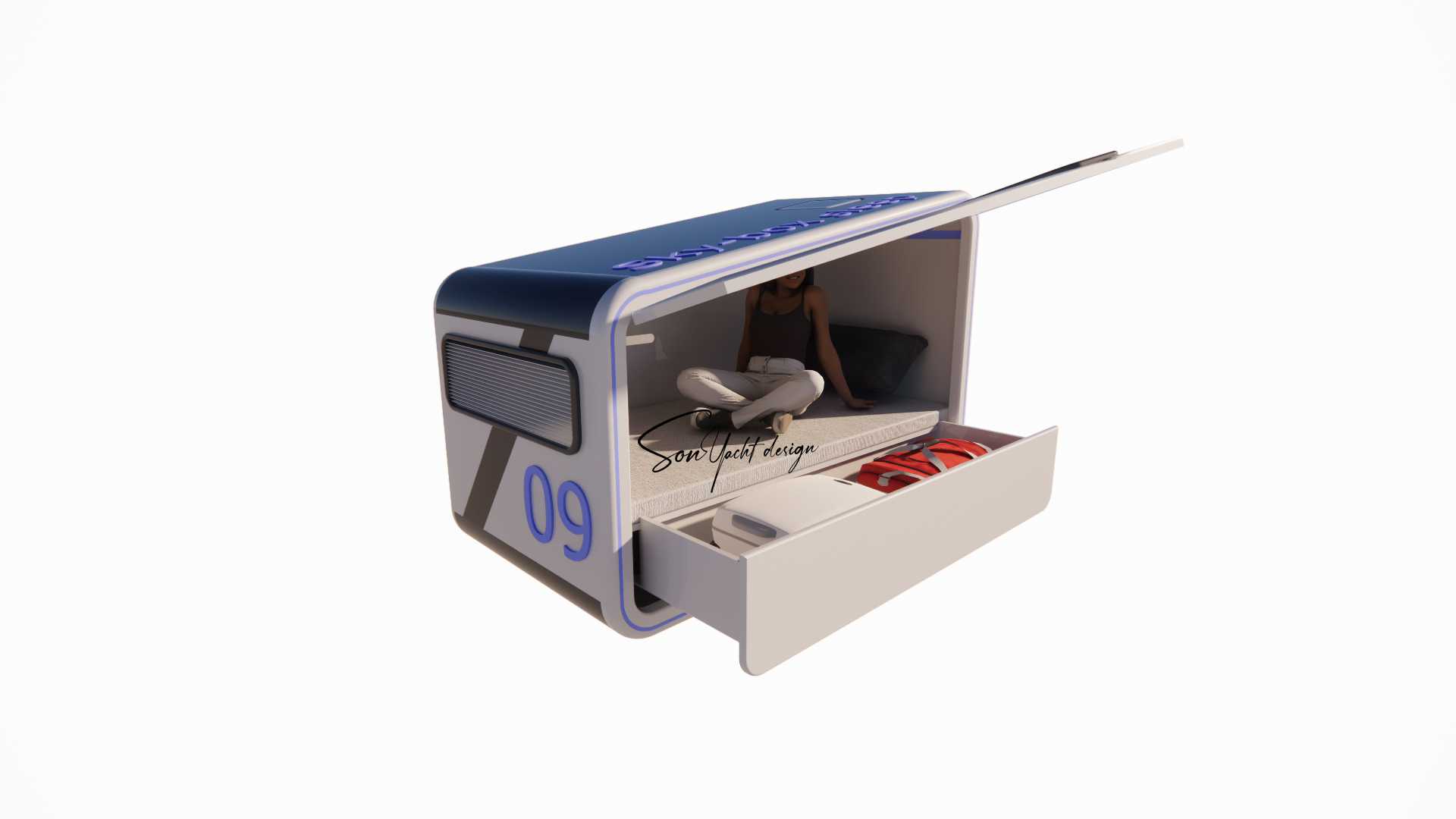 Sky-Box Sleep là mô-đun box ngủ cá nhân cao cấp, được thiết kế tối ưu cho những không gian hạn chế như du thuyền, khu nghỉ dưỡng trải nghiệm và khách sạn capsule. Thiết kế khép kín, ngôn ngữ tương lai, tích hợp khoang chứa hành lý và hệ thống thông gió thông minh mang đến cảm giác riêng tư, an toàn và tiện nghi tuyệt đối trong một không gian tối giản.