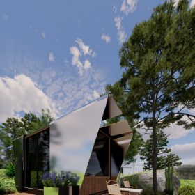 - Đây là nhà lắp ghép / module house phong cách hiện đại – futuristic.