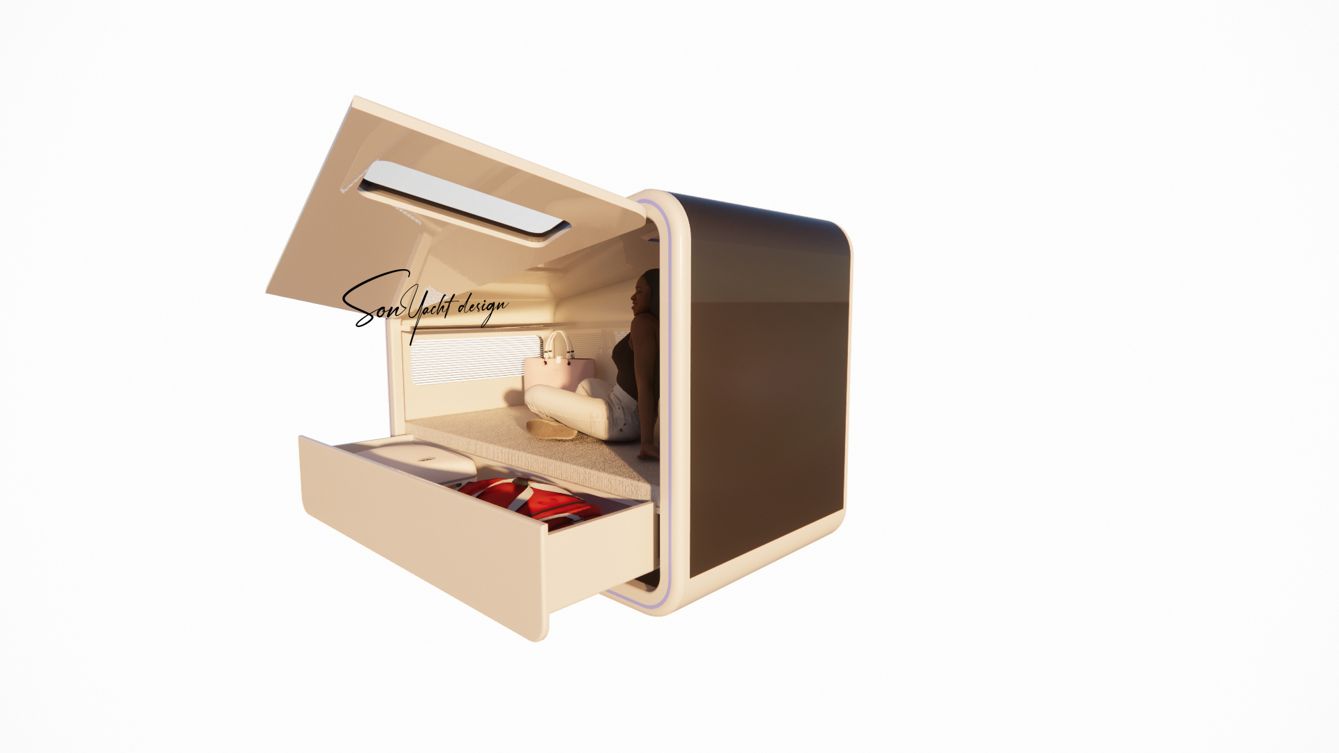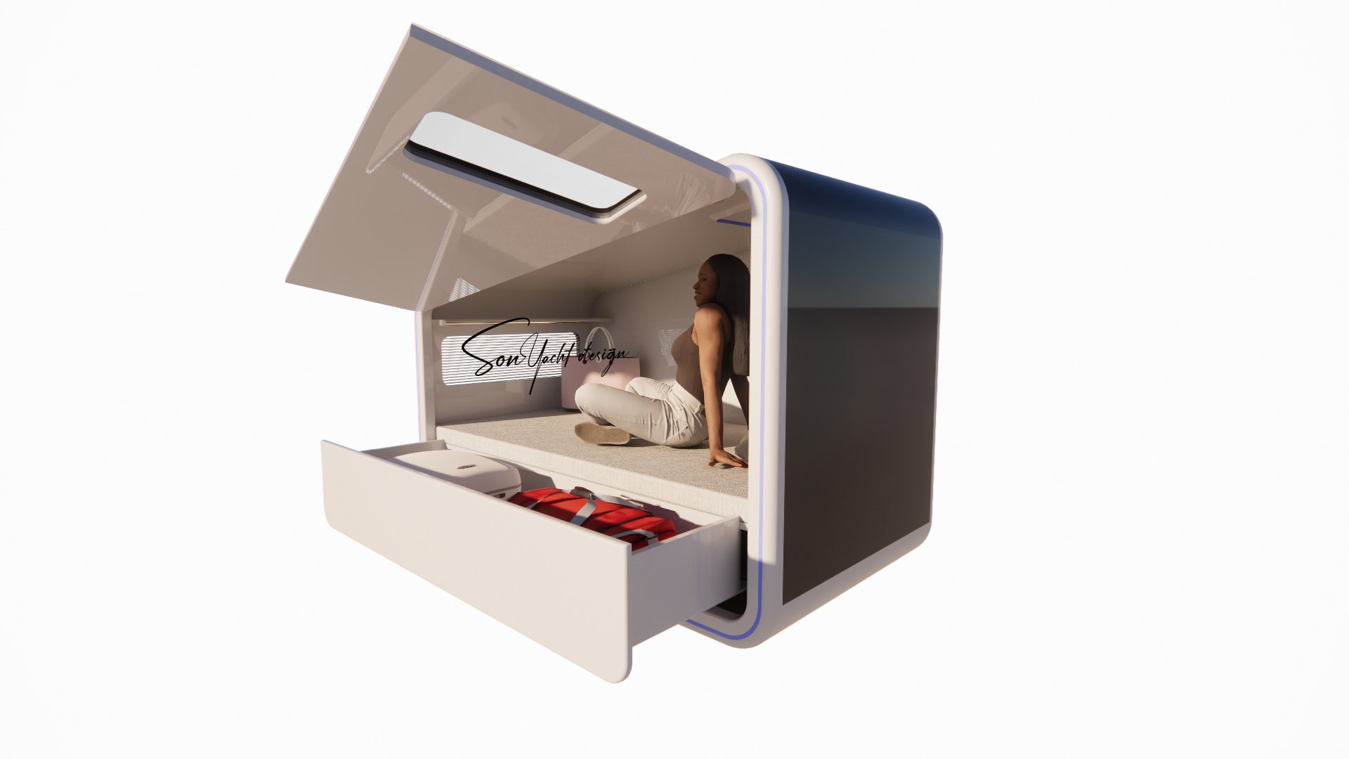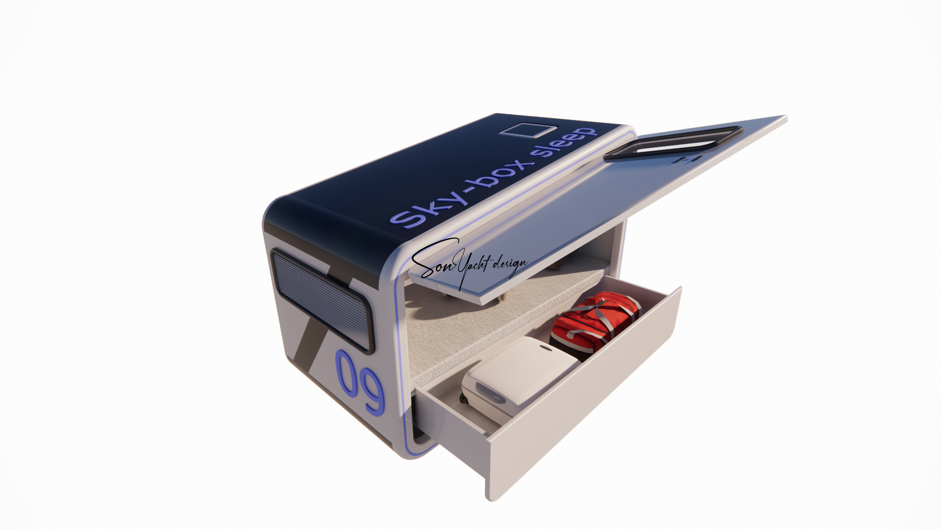 Sky-Box Sleep là mô-đun box ngủ cá nhân cao cấp, được thiết kế tối ưu cho những không gian hạn chế như du thuyền, khu nghỉ dưỡng trải nghiệm và khách sạn capsule. Thiết kế khép kín, ngôn ngữ tương lai, tích hợp khoang chứa hành lý và hệ thống thông gió thông minh mang đến cảm giác riêng tư, an toàn và tiện nghi tuyệt đối trong một không gian tối giản.