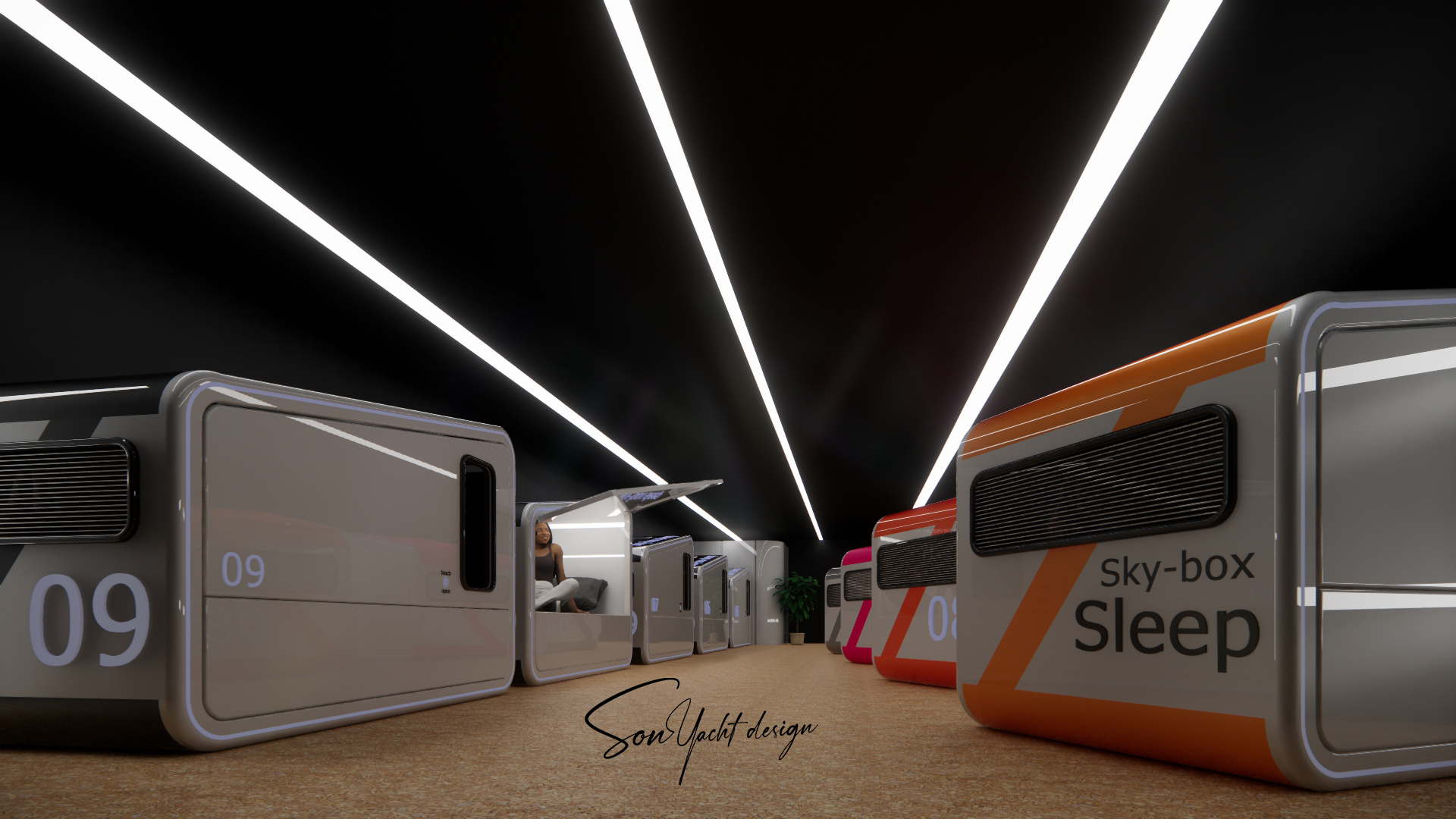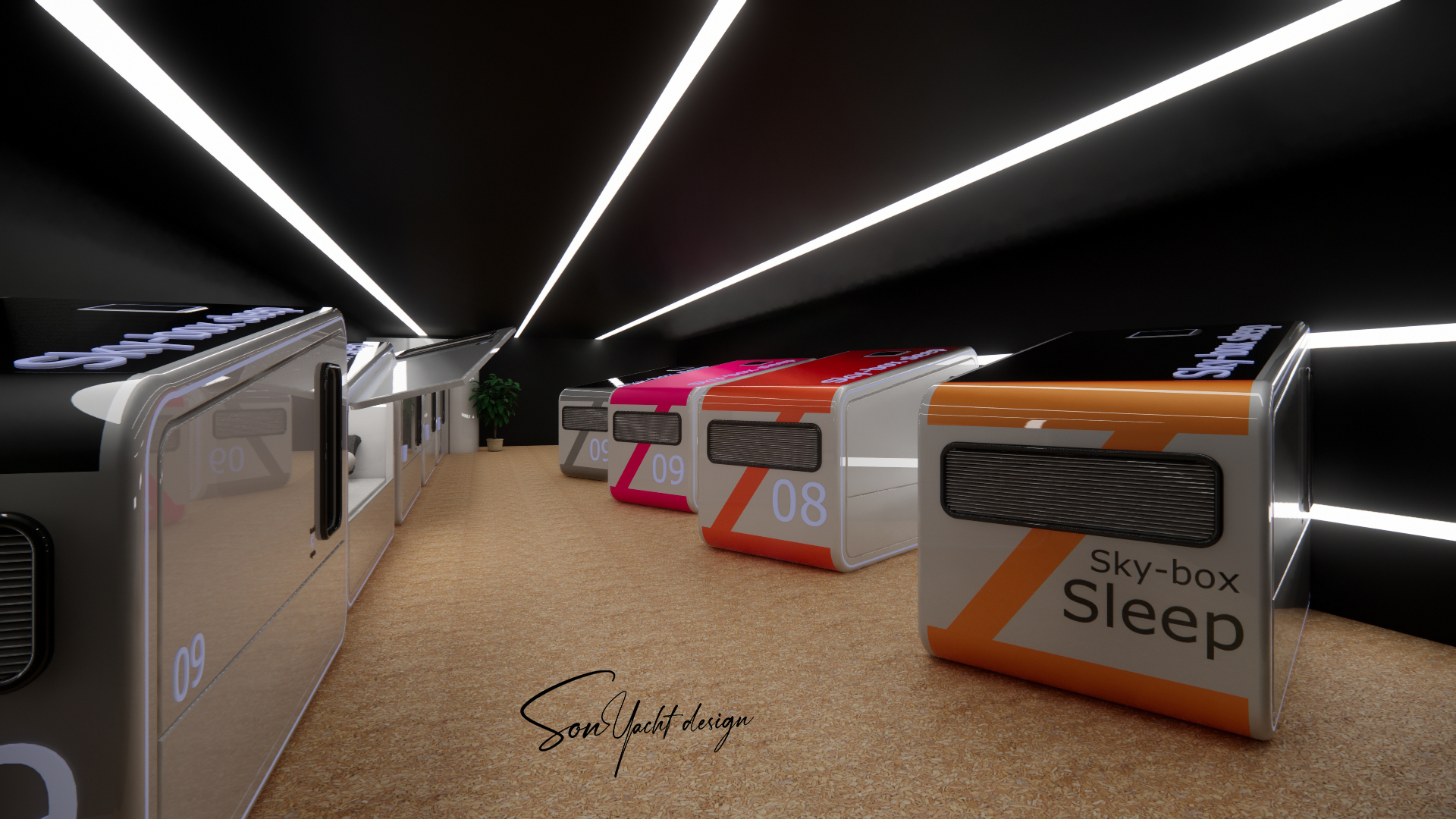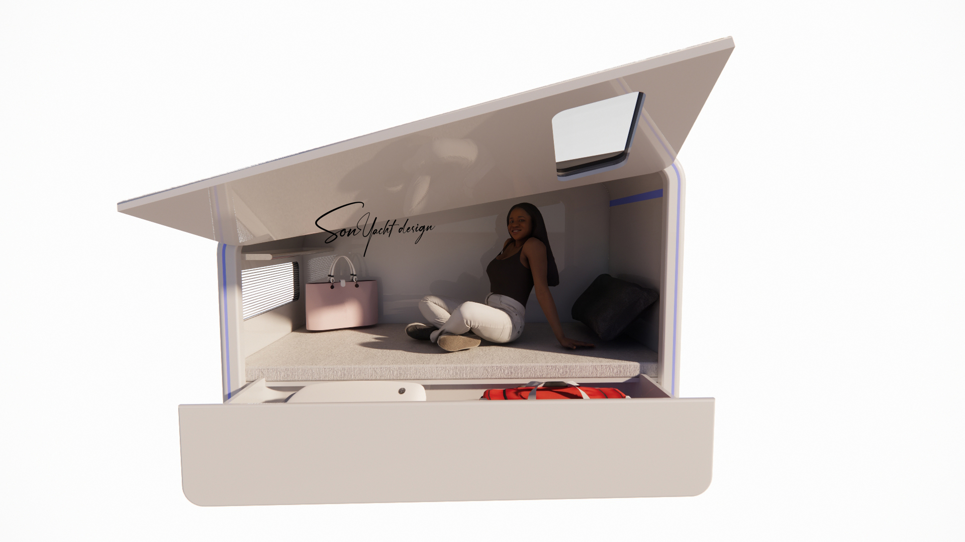 Sky-Box Sleep là mô-đun box ngủ cá nhân cao cấp, được thiết kế tối ưu cho những không gian hạn chế như du thuyền, khu nghỉ dưỡng trải nghiệm và khách sạn capsule. Thiết kế khép kín, ngôn ngữ tương lai, tích hợp khoang chứa hành lý và hệ thống thông gió thông minh mang đến cảm giác riêng tư, an toàn và tiện nghi tuyệt đối trong một không gian tối giản.